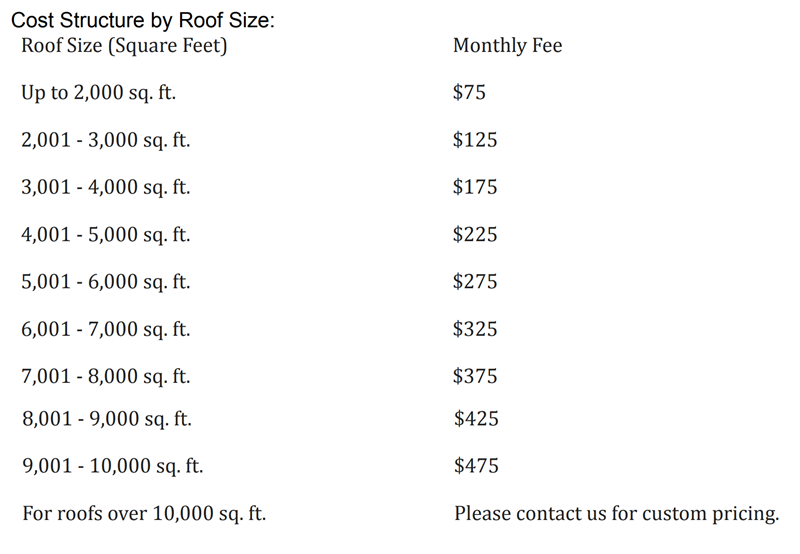 - Note: Ice removal is not included; inspection and maintenance only will be